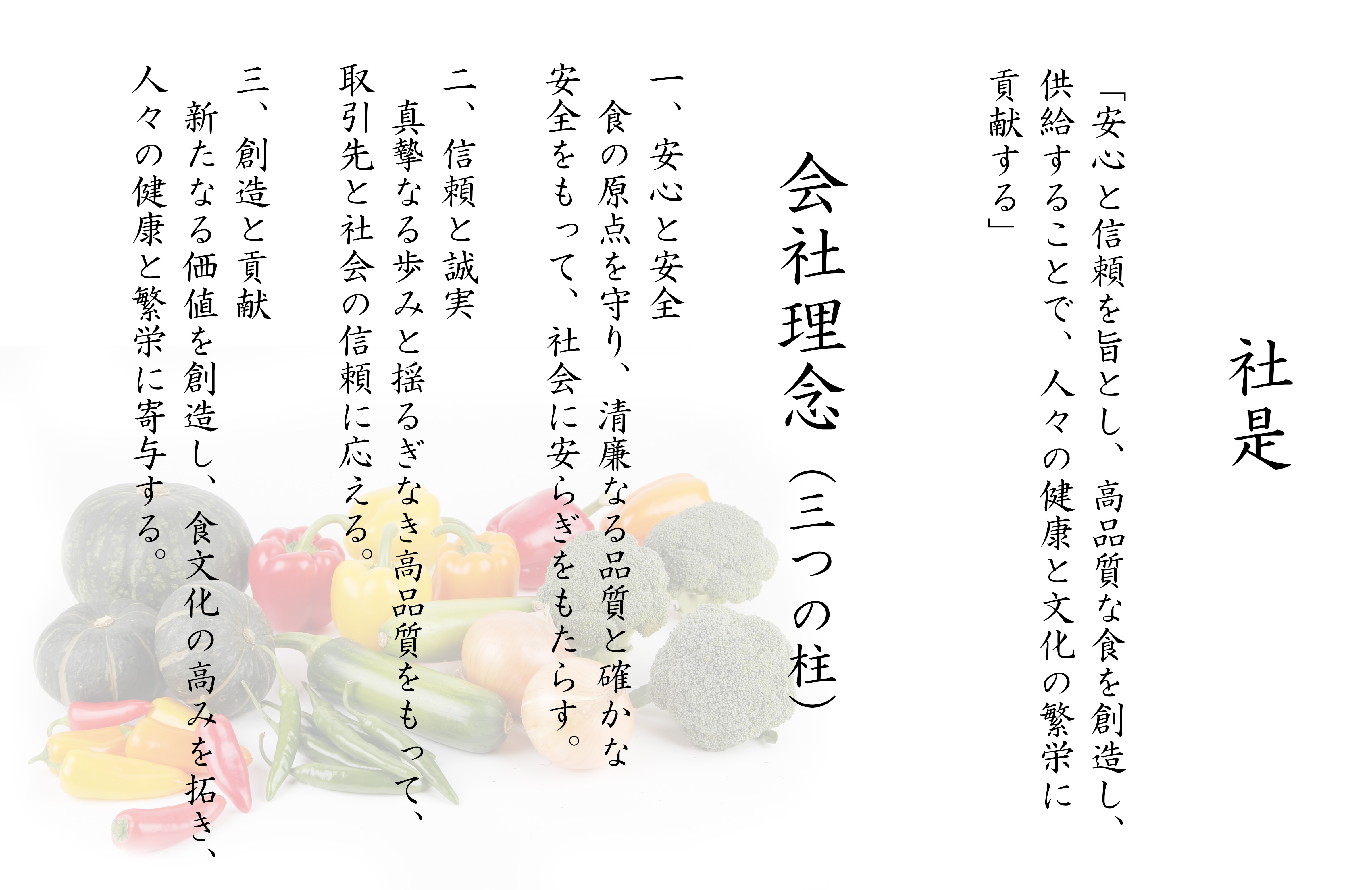 また、青果物・加工品卸売事業においても契約産地・契約農家などで作られる新鮮で高品質な野菜を安定的に調達することにより、お客様へ安全・安心な野菜を、野菜の元気をお届けいたします。